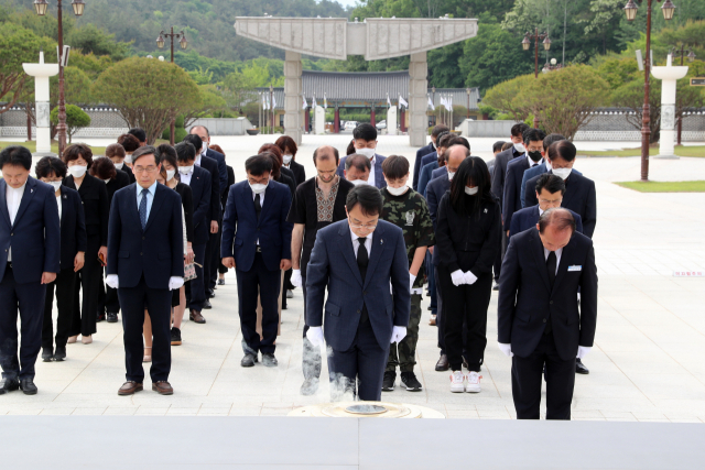 이돈국 광산구청장 권한대행의 헌화·분향을 시작으로 참석자들은 차례로 오월영령들에 묵념한 뒤 윤상원 열사 묘를 참배했다.