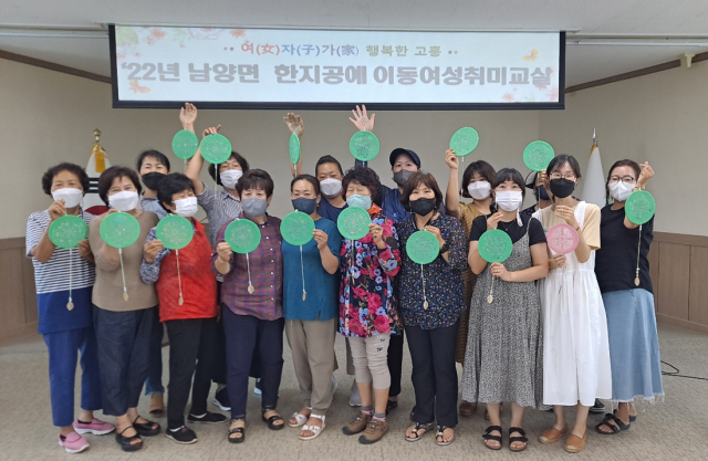 고흥군 남양면에서는 지난해 참가자들의 큰 호응을 얻은 한지공예 이동취미교실이 올해도 열렸다.