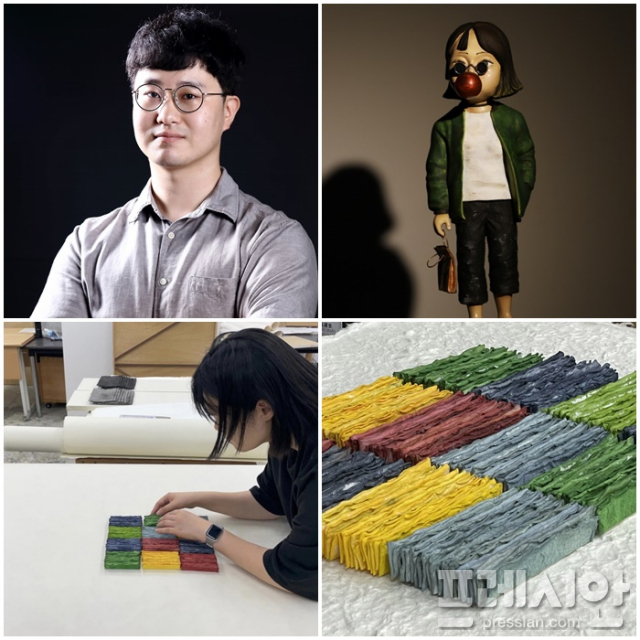 ▲사진 위 김승주 작가와 그의 작품, 아래 이수아 작가와 그의 작품 ⓒ프레시안