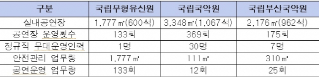 국립무형유산원이 전체 안전관리와 공연운영 업무량에 비해 이를 관리할 전문인력은 턱없이 부족한 것으로 나타났다.