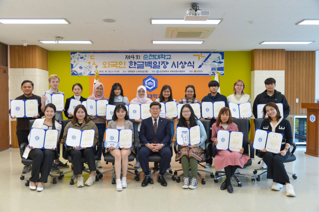 국립 순천대학교(총장 고영진)는 지난 7일 열린 ‘제4회 순천대학교 외국인 한글 백일장’을 성황리에 마무리하고, 12일 시상식을 개최했다고 밝혔다.