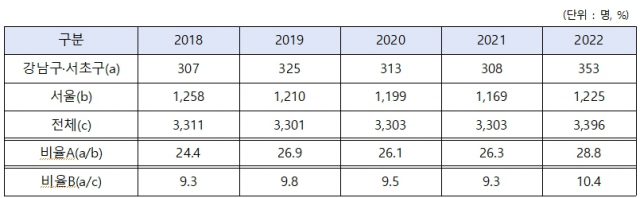 이 국정감사 정책자료집에서 분석한 내용에 따르면 지난 5년간 서울대 신입생의 수도권 학생 비율은 2018년 63.9%, 2019년 61.8%, 2020년 63.7%, 2021년 63.4%였다가 2022년에는 64.6%로 상승했다.
