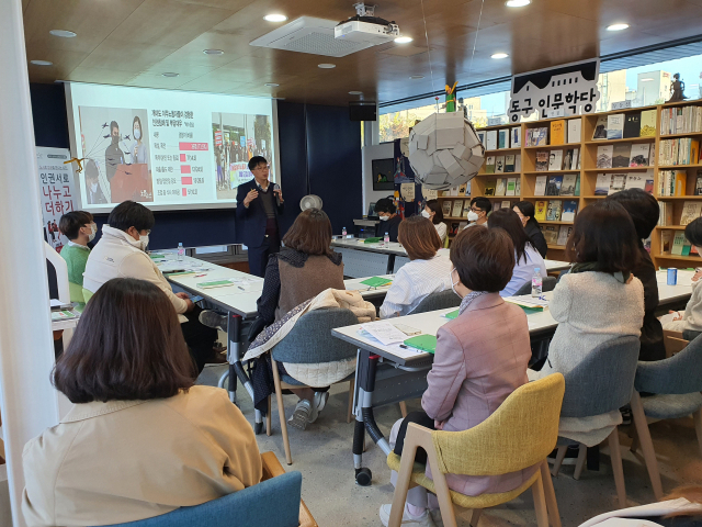 지난 19일 동구 인문학당에서 인권 존중 시각으로 인권 친화적 행정문화 실현을 위한 공직자 대상 인권 감수성 향상 프로그램 ‘도서로 인권을 만나는 시간’을 진행했다고 밝혔다.