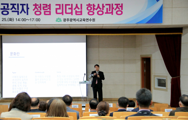 25일 광주교육연수원에 따르면 이번 교육은 ‘청렴 리더십’에 대한 고위공직자 및 교(원)장의 인식 제고와 더불어 청렴한 조직문화를 확산하기 위해 마련됐다. 교육방식은 4급(상당) 이상 고위공직자는 대면으로, 공사립 학교장, 공립 단설유치원장은 비대면(Zoom)으로 동시에 이뤄졌다.