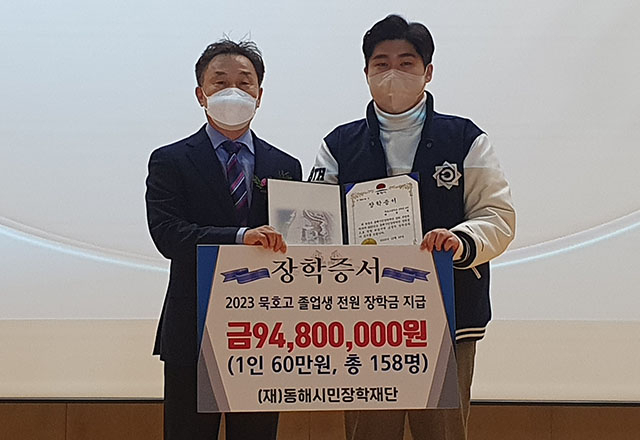 (재)동해시민장학재단(이사장 심규언, 이하 재단)은 올해부터 관내 고교 3학년 졸업생 801명 전원에게 1인당 60만 원씩 총 5억여 원 규모의 장학금을 지급한다고 밝혔다.