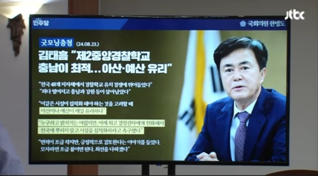 이에 따르면 김태흠 충남지사는 당시 언론 간담회에서 "전국 48개 지자체에서 경찰학교 유치 경쟁에 뛰어들었다. 죄다 떨어지고 충남과 강원 등이 살아남았다"고 말했다.