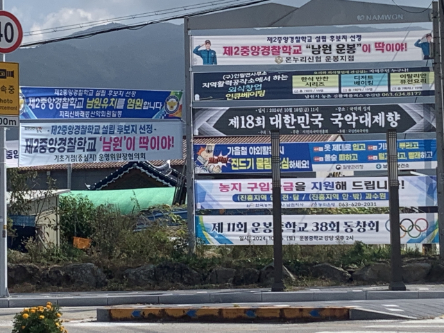 ▲남원에 제2중앙경찰학교가 설립되어야 한다는 주민들의 여망을 담은 플래카드가 곳곳에 걸려 있다. ⓒ프레시안