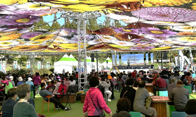 이렇게 국화꽃으로 가득한 전북특별자치도 익산시의 천망송이 축제에 익산인구의 3배에 가까운 전국 인파가 몰렸다.