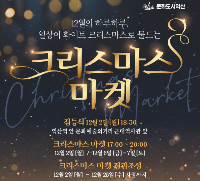 마지막을 아름답게 장식할 '크리스마스 마켓'도 마련된다. 2일과 6일, 7일 사흘 간 오후 5시부터 8시까지 근대역사관 야외광장에서 와인과 간식, 향초, 오르골, 크리스마스 장식 등을 만나볼 수 있다. 익산시 대표 관광캐릭터인 마룡이 상품도 준비돼 있다.