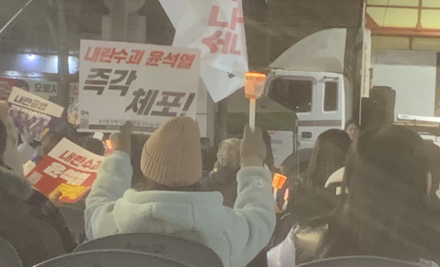 자발적으로 참여한 시민들은 '윤석열 탄핵'과 '국민의힘 해체'를 외치며 촛불로 어둠을 밝혔다. 윤석열 대통령을 체포하라는 외침도 쩌렁쩌렁 울렸다.
