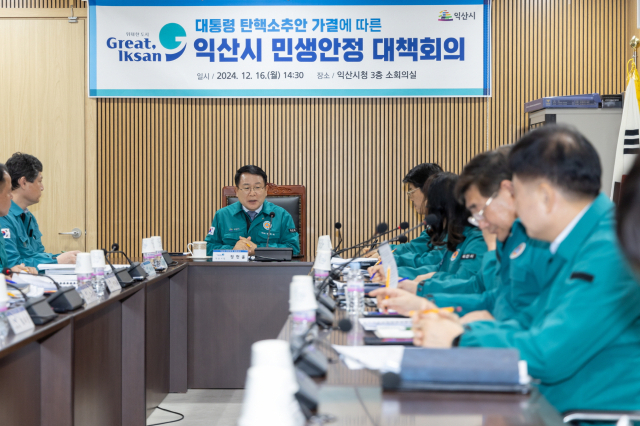 정헌율 익산시장은 16일 민생안정을 위한 긴급 회의를 열고 "연말연시 특수를 누릴 시기임에도 탄핵정국 여파로 골목 상권이 얼어붙어 있다"면서 "대통령 탄핵 의결에 따른 혼란 상황에 대비하고 민생 안정을 위해 적극적으로 대책을 마련해야한다"고 강조했다.
