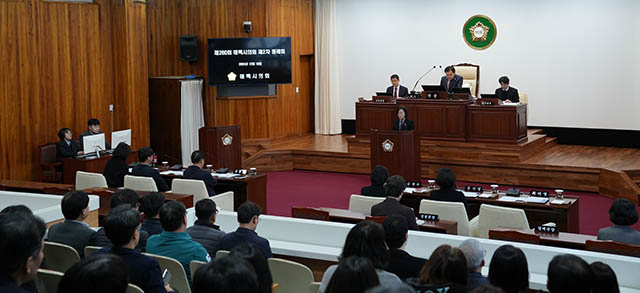 고재창 의장은“행정사무감사와 2025년도 본예산안 심의 등 의정활동에 애써주신 동료 의원들께 감사하다”며 “이번 정례회 기간 동안 지적된 사항의 신속한 조치와 의원들이 제시한 의견이 시정에 적극 반영될 수 있도록 노력해 줄 것”을 당부했다.