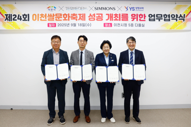 경기 이천쌀문화축제추진위원회(위원장 김경희)는 18일 테르메덴, 시몬스, YS생명과학과 함께 업무협약을 체결했다.