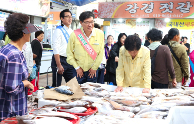 진 군수는 시장 내 제수와 생활필수품 가격을 세심히 확인하며 상인들의 애로사항을 청취했다. 또한 장을 보러 나온 군민들과 일일이 인사를 나누며 전통시장 이용을 독려하고 추석 인사를 전했다.