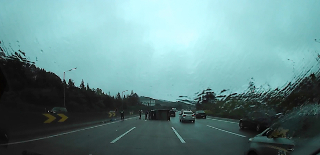 경북경찰청에 따르면 지난 7일 오전 10시 2분경, 기동순찰대 4팀은 추석 연휴 방범·교통지원근무 중 경부고속도로 하행선 칠곡휴게소 인근에서 중앙분리대에 충돌한 뒤 좌전도된 1톤 화물차를 발견했다.