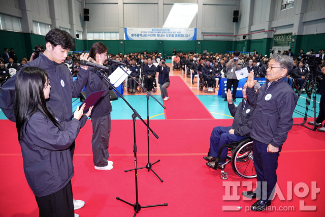선수대표 선서는 이승후(배드민턴) 선수와 한다영(태권도) 선수가 나서 필승의 결의를 다졌다. 이승후 선수(15)는 광주선수단의 최연소 선수로 현재 국가대표로 선발돼 활약 중이며, 한다영 선수는 오는 11월 개최되는 2025 도쿄 데플림픽(청각인 장애 올림픽) 국가대표로 출전을 준비하고 있다.