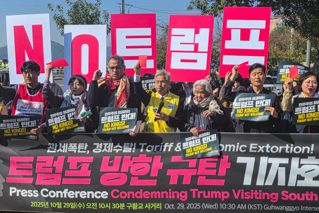 이재명 대통령과 트럼프 대통령의 한미정상회담이 열린 29일, 경주 시내에서는 트럼프 미국 대통령의 방한을 반대하는 기자회견과 시위도 함께 열렸다.