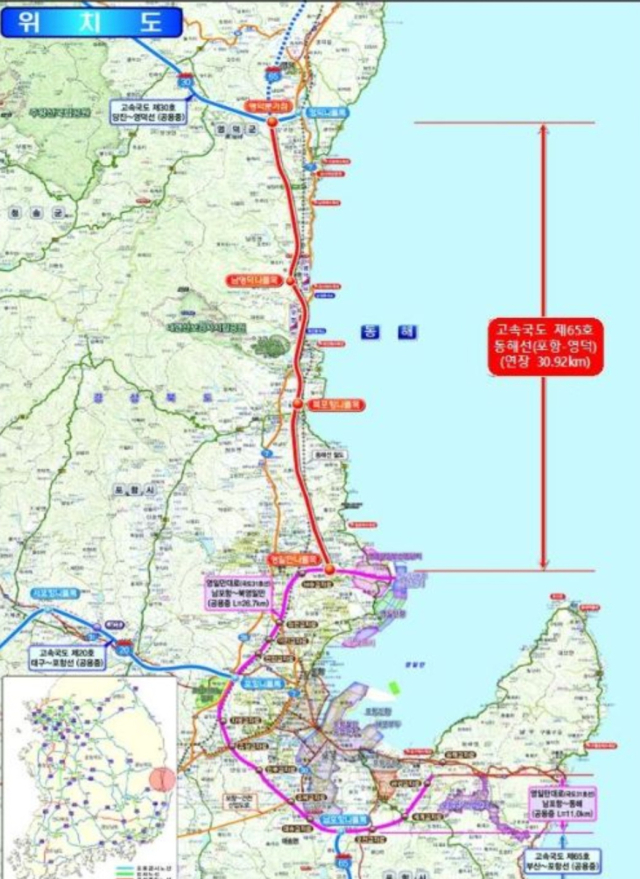 ▲포항-영덕 고속도로 구간(위치도)ⓒ국토부제공