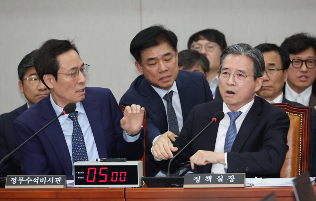 권 의원은 "(김 실장과 김 의원이) 상호 상성 관계를 좀 했는데 앞으로 국회에서 이런 모습은 보이지 않도록 해야 된다"고 총평을 내리면서도 "단지 그런 식의 질문을 하는 건 이건 전형적인 정치 공세"라고 김 의원 책임을 부각했다.