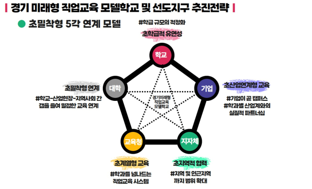 특히 도교육청은 △초학급적 유연성(학교) △초산업연계형 교육(기업) △초지역적 협력(지자체) △초계열형 교육(교육청) △초밀착형 연계(대학) 등 ‘초밀착형 5각 연계 모델’을 진로직업교육에 적용했다.