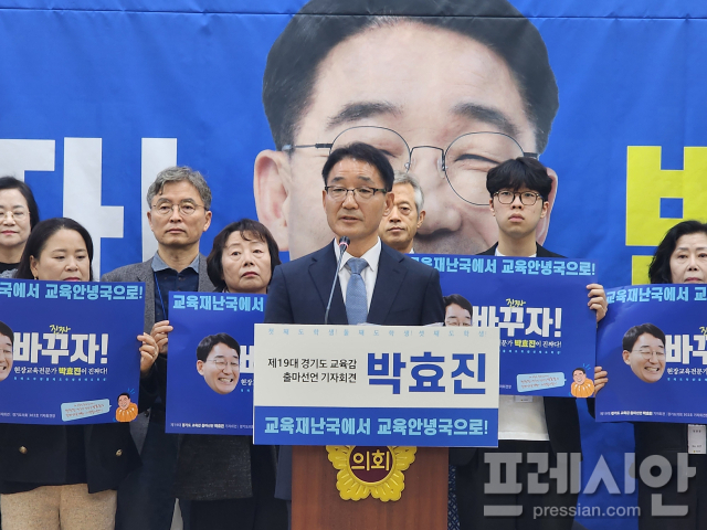 박효진 경기교육연대 상임대표가 25일 경기도의회 기자회견장에서 출마 기자회견을 열고 제19대 경기도교육감 선거에 공식 출사표를 던졌다.