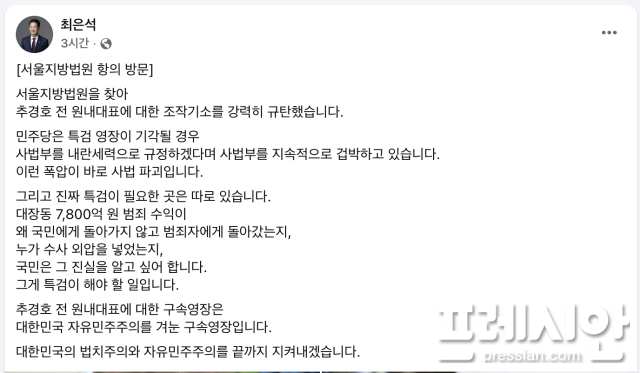 주 의원은 페이스북을 통해 “정부여당이 시민들 앞에서 했던 약속은 다 어디로 갔나”고 지적하며, 이재명 대통령·김민석 총리· 정청래 대표의 과거 발언을 소환하며 규탄했다.