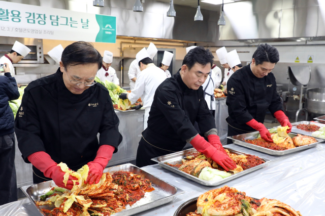 강원랜드(대표이사직무대행 최철규)는 3일 하이원 그랜드호텔 5층 연회장 주방에서 지역 농산물 소비촉진과 ESG 가치 실천을 위해 ‘지역 배추 활용 김장 행사’를 개최했다고 밝혔다.