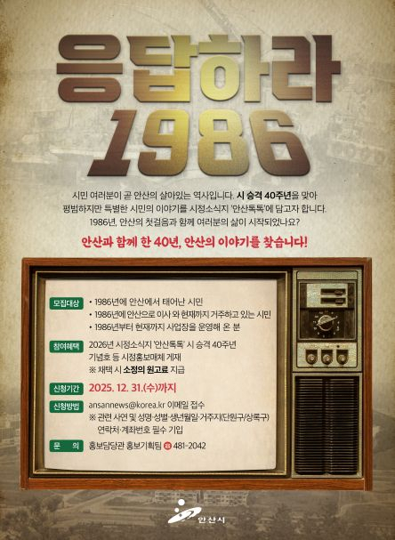 경기 안산시는 시 승격 40주년을 맞는 2026년을 앞두고 시민들의 삶을 주제로 한 ‘시민 이야기’ 사연을 오는 31일까지 공개 모집한다.