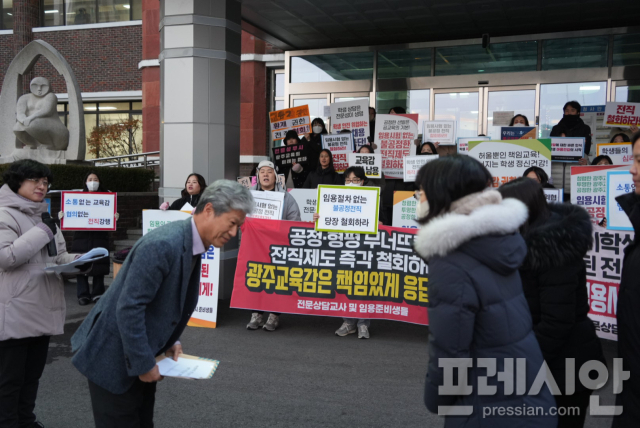 광주시교육청의 '전문상담교사 전직 임용' 일방 추진에 반발하는 현직 교사와 임용준비생들의 분노가 차가운 겨울 거리에서 터져 나왔다. 이들은 "수년간의 노력을 짓밟고 전문성을 훼손하는 행정편의주의"라고 규탄하며 교육청의 '불통' 행정을 한목소리로 비판했다.