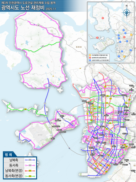 인천광역시는 송도·청라경제자유구역 및 계양 테크노밸리(TV) 개발계획, 고속도로 건설 및 교통혼잡도로 개선사업계획 등 국가 상위계획을 반영해 광역시도 노선 체계를 재정비해 고시한다고 22일 밝혔다.