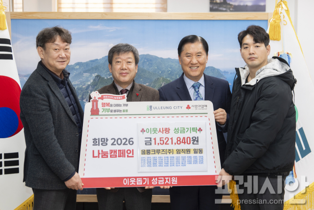 울릉크루즈는 연말을 맞아 '희망2026 나눔캠페인' 성금 500만 원과 임직원들이 매년 11월 기본급의 1%를 모아 마련한 이웃사랑 성금 150여만 원을 기탁했다고 30일 밝혔다.