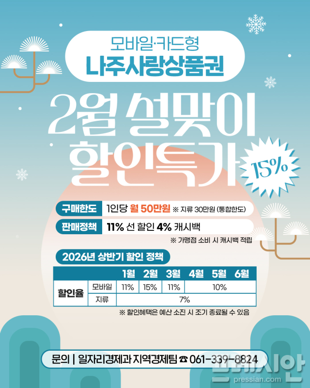 전남 나주시가 설 명절을 앞두고 지역 소비에 즉각적인 온기를 불어넣기 위한 나주사랑상품권 확대 발행에 나섰다.