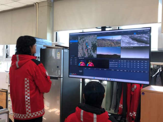 AI 카메라는 연기나 불꽃을 실시간으로 감지해 산불을 조기에 발견하고, 위험 정보를 산불방지대책본부로 전송한다. 본부 소속 직원 3~6명이 평일과 휴일 구분 없이 상황 근무를 하며 산불을 감시한다.