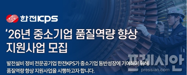 한전KPS은 국내 발전정비 산업계의 품질 경쟁력 제고를 위해 '2026년 제1차 중소기업 품질역량 향상 지원사업'을 추진한다고 2일 밝혔다.