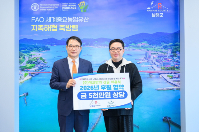 협약에 따라 ㈜에코맘의산골이유식은 2026년 남해군에서 태어나는 아기들을 대상으로 친환경 초기 이유식 세트를 후원하며 군은 대상자 발굴과 전달 체계를 구축해 모든 가정에 빠짐없이 지원이 이뤄질 수 있도록 할 예정이다.
