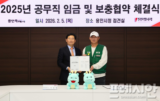 용인특례시는 5일 전국민주연합노동조합 용인지부와 ‘2025년 공무직 임금·보충 협약’을 체결했다.