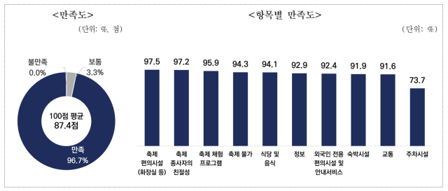 실제 외국인 축제 만족도는 평균 87.4점으로 집계됐다.
