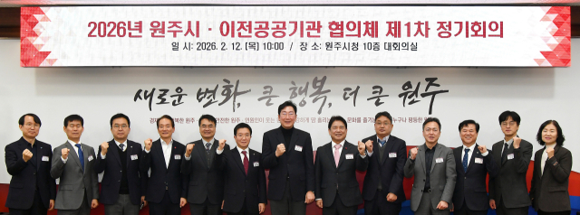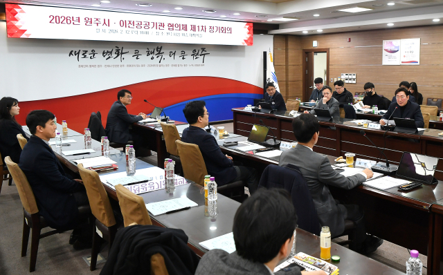 원주시와 이전공공기관 간 상생 협력을 위한 2026년 제1차 원주시·이전공공기관 협의체 정기회의가 12일 원주시청에서 열렸다.