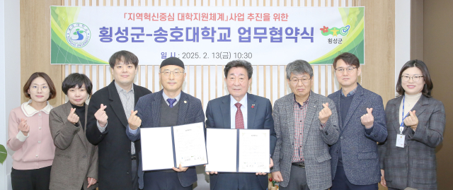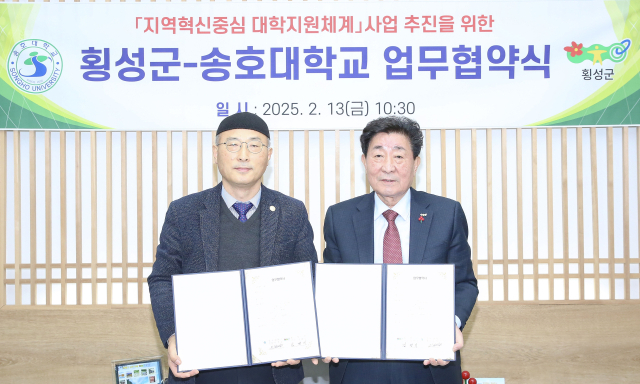 횡성군과 송호대학교가 ‘대학이 살리는 지역, 지역이 키우는 대학’ 실현을 위한 업무협약을 13일 체결하고, 지역 맞춤형 인재 양성과 산업 혁신을 위해 힘을 모은다.