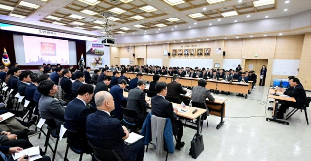 시청 대회의실에서 열린 이날 회의에는 유정복 시장을 비롯해 시 본청 4급 이상 간부공무원, 직속기관 및 사업소장, 군·구 부단체장, 시 유관기관장 등 200여 명이 참석했다.