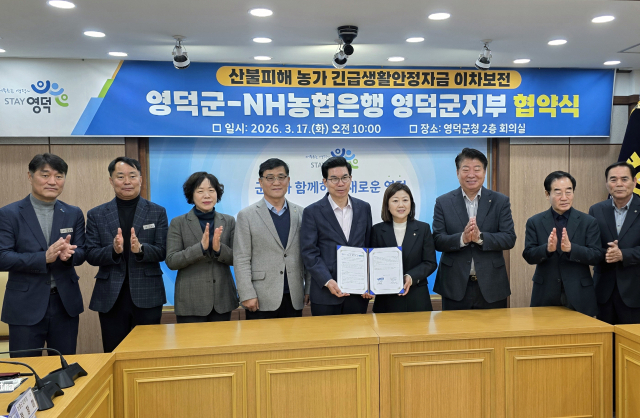 영덕군은 지난해 3월 말 발생한 경북산불로 어려움을 겪는 농가들의 조속한 영농 재기를 돕기 위해 지난 17일 NH농협은행 영덕군지부와 ‘긴급생활안정자금 이자 지원사업’을 위한 업무 협약을 맺었다.