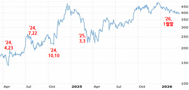 2026년 1월 말 : 일론 머스크는 옵티머스 관련 생산 확대가 초기에 "고통스러울 정도로 느리게(agonizingly slow)" 이뤄질 것이라며 신중한 태도 보임. 주가는 큰 변동 없음.