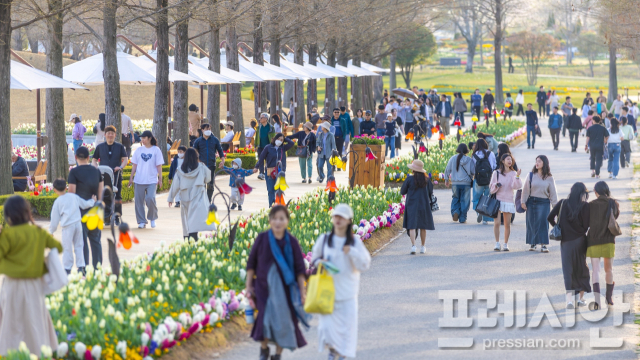 순천만국가정원은 요즘 평일 1만 명, 주말 3만 명 정도의 관람객이 찾고 있다. 수 천만 송이의 튤립이 순차적으로 피어나고 봄의 절정으로 이어지는 이번 주말부터는 더 많은 관람객이 예상된다.