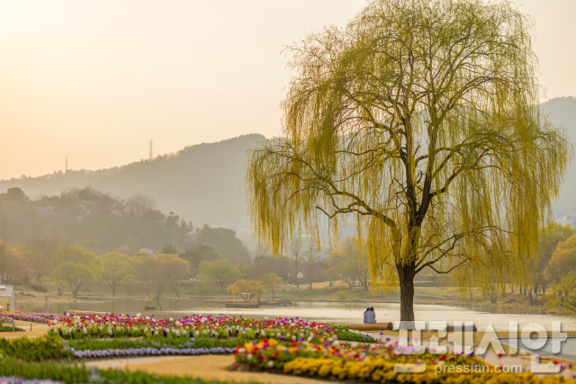 노을정원으로 가는 길엔 수를 헤아릴 수 없는 튤립이 식재돼 4월 초 개화를 앞두고 있고, 중국 정원을 지나 네덜란드 정원으로 향하는 동천변에는 연분홍 벚꽃이 피어나 환상적인 광경을 연출하고 있다.