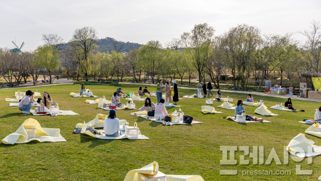 부모 손을 잡고 정원을 찾은 아이들은 잔디밭을 달리고, 단체 관광에 나선 일행은 튤립과 벚꽃 등 아름답게 피어난 꽃을 배경으로 서로 사진을 찍어주며 추억 만들기에 바쁜 모습이다.