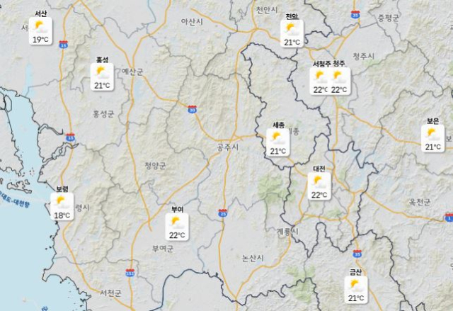 이날 낮 최고기온은 대전·청주 22도, 세종·천안 21도로 예보됐으며 아침 최저기온은 4도 안팎으로 예상된다.