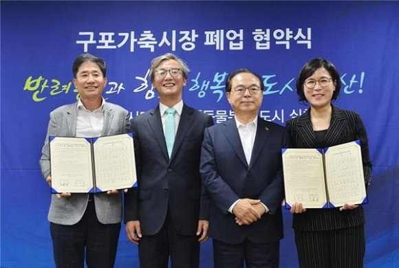 ▲2019년 7월1일 진행된 구포 가축시장 폐업 협약식.ⓒ부산시