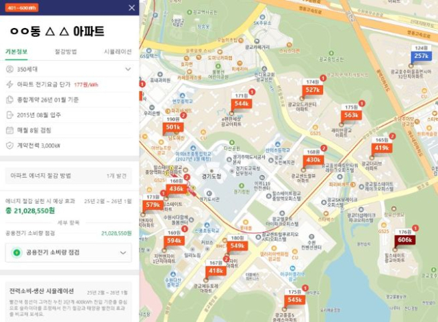 공동주택에 대해서는 아파트 단지별 에너지 소비를 인근 유사 단지와 비교 분석해 누진제 구간 진입 여부 등 낭비 요인을 진단하고, 공용 전기요금 절감 전략과 생활 가이드를 제시한다. 이와 함께 단열, 창호, 설비 개선 효과를 예측하는 ‘그린리모델링’ 시뮬레이션 기능도 제공한다.