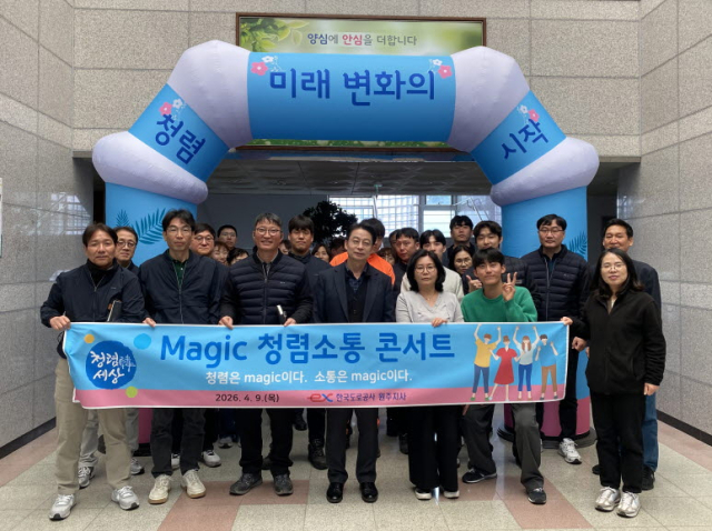 한국도로공사 원주지사(지사장 김종훈)는 9일 직원들이 참석한 가운데 ‘Magic 청렴소통 콘서트’를 열어 청렴소통 교육을 했다.