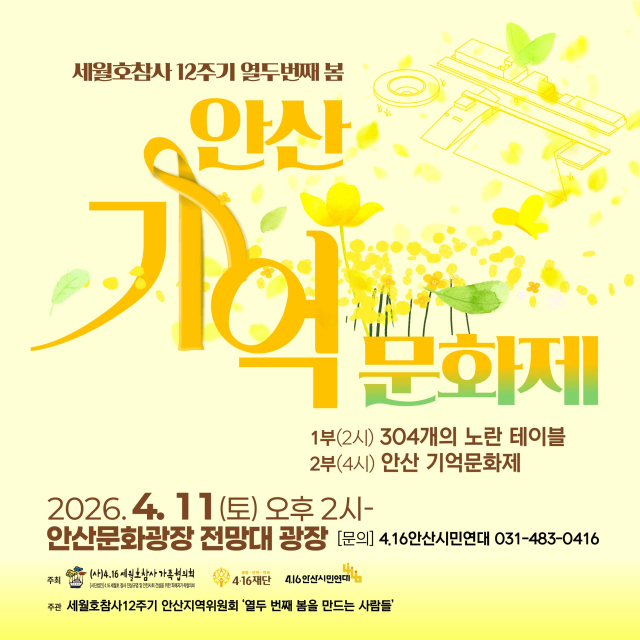 토론회에 이어 열리는 ‘안산기억문화제’에서는 공연과 발언 및 영상이 어우러진 문화 프로그램을 통해 기억과 연대의 의미를 시민과 함께 나누며 세월호 참사 희생자들을 추모하는 시간으로 운영될 예정이다.